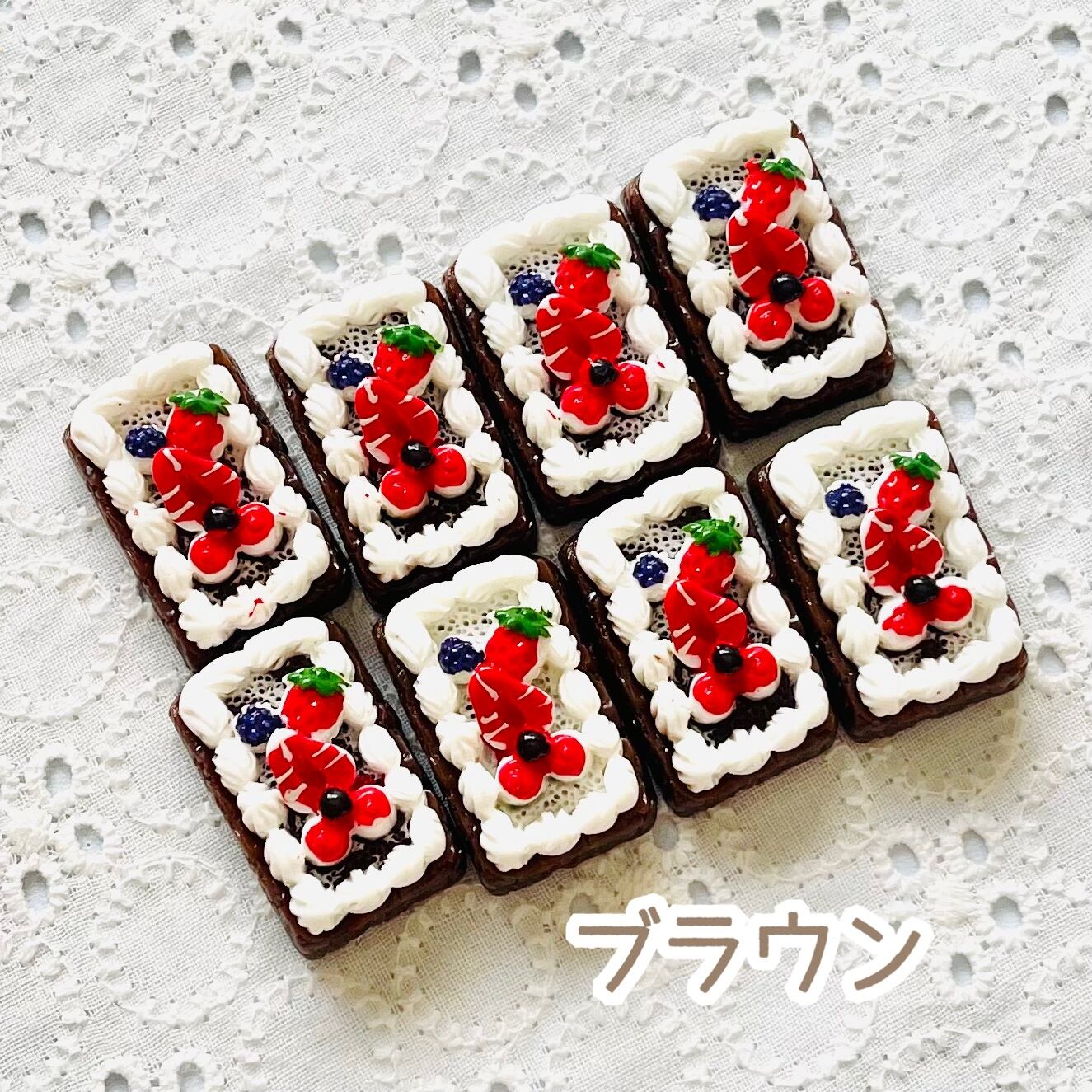 【4個】いちごホイップスクエアケーキ/デコパーツ【2色】#072