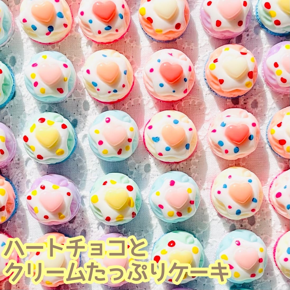 【6個】ハートチョコとクリームたっぷりケーキ/デコパーツ【6色】#088