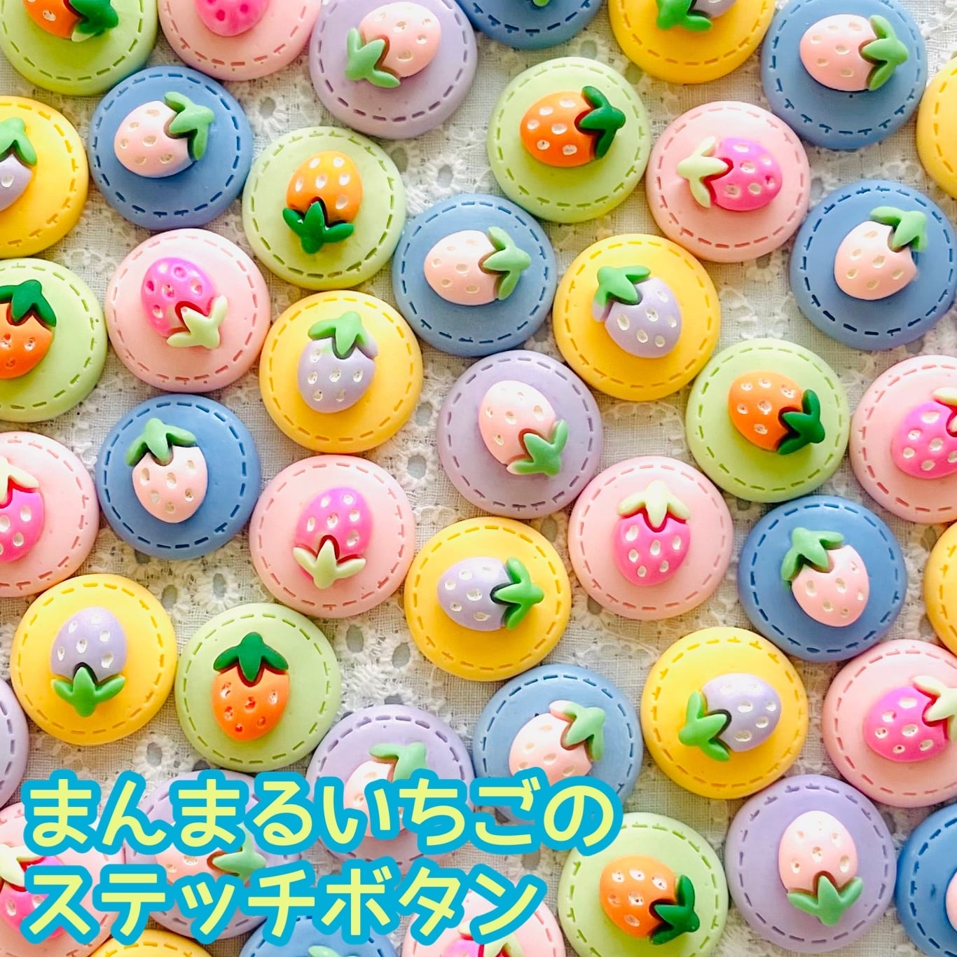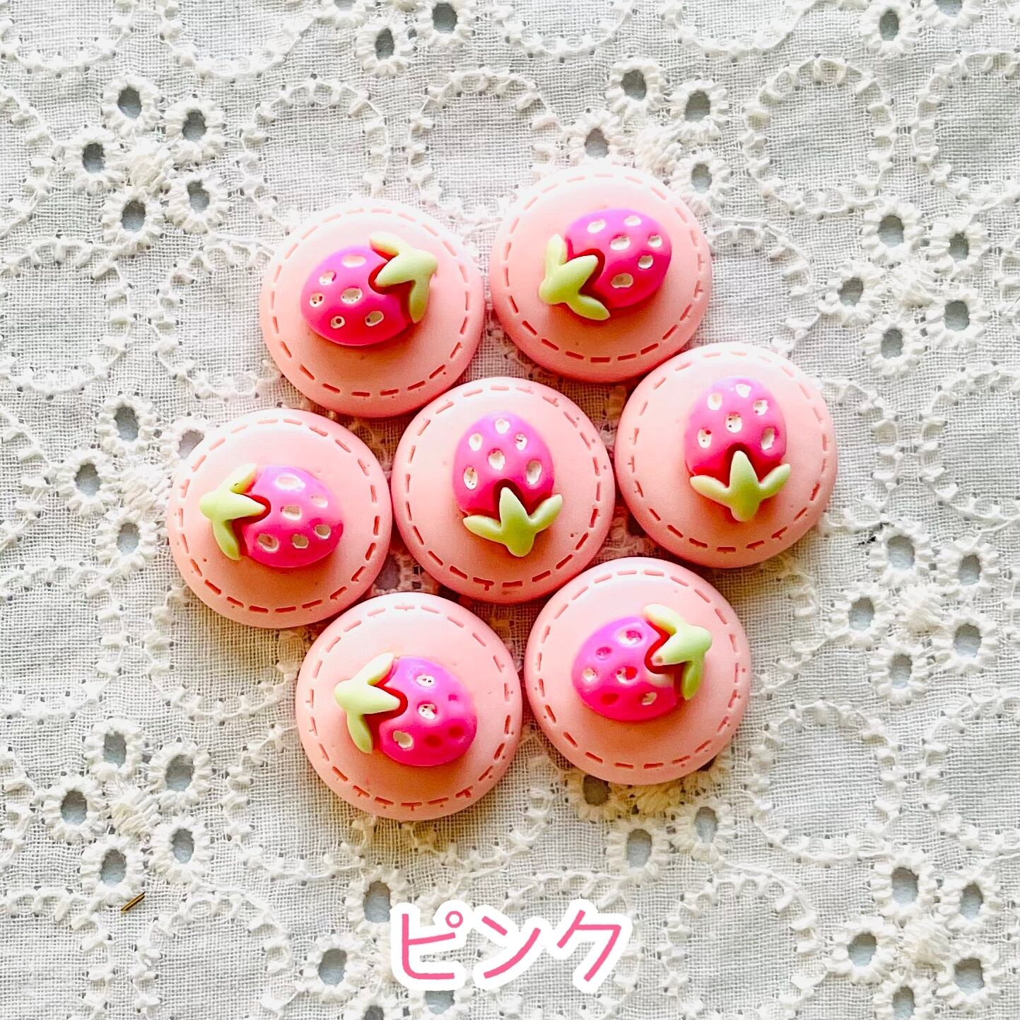 【2個】まんまるいちごのステッチボタン/デコパーツ【5色】#142