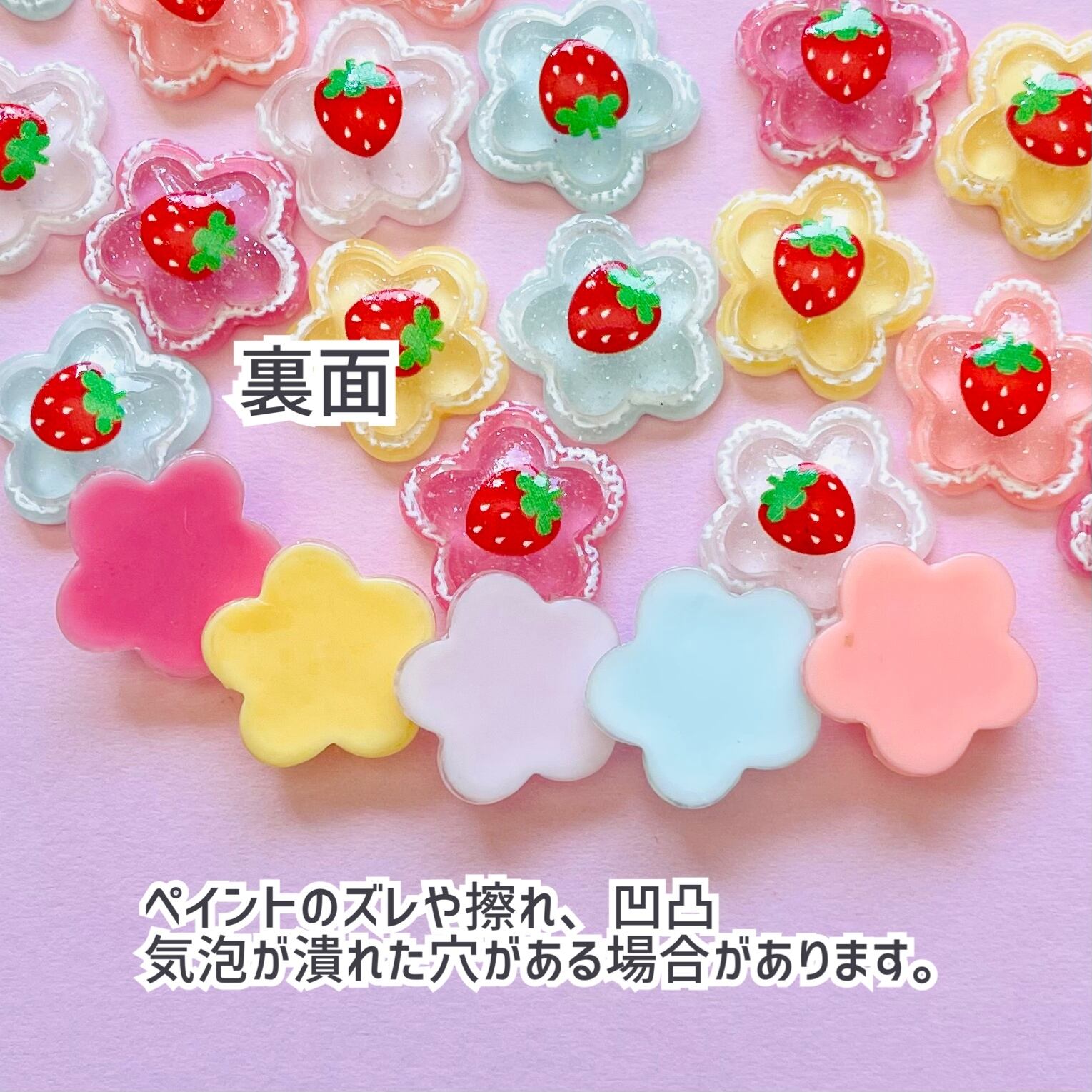 【2個】クリアフラワーいちご/デコパーツ【5色】#165
