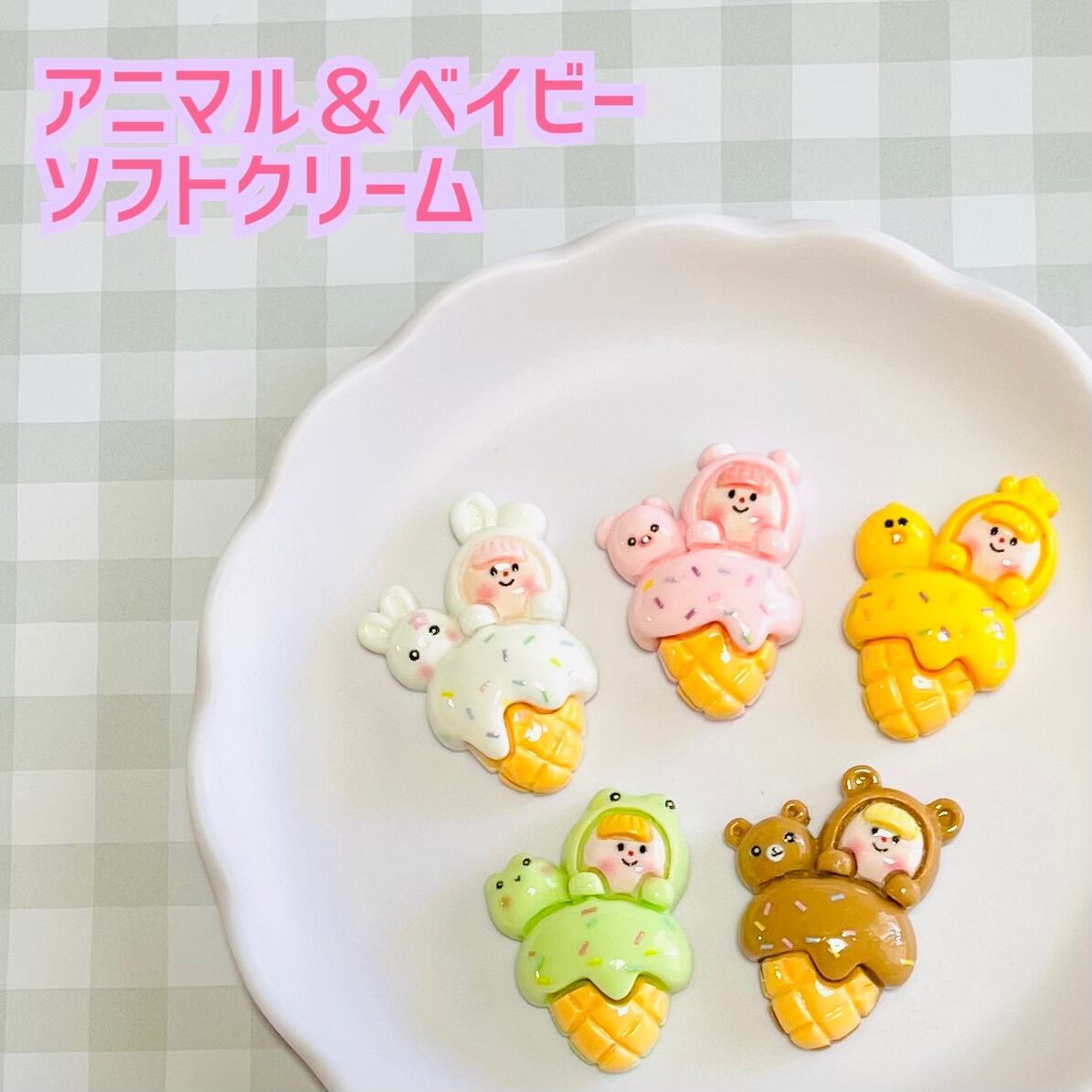 【2個】アニマル&ベイビーソフトクリーム/デコパーツ【5色】#182