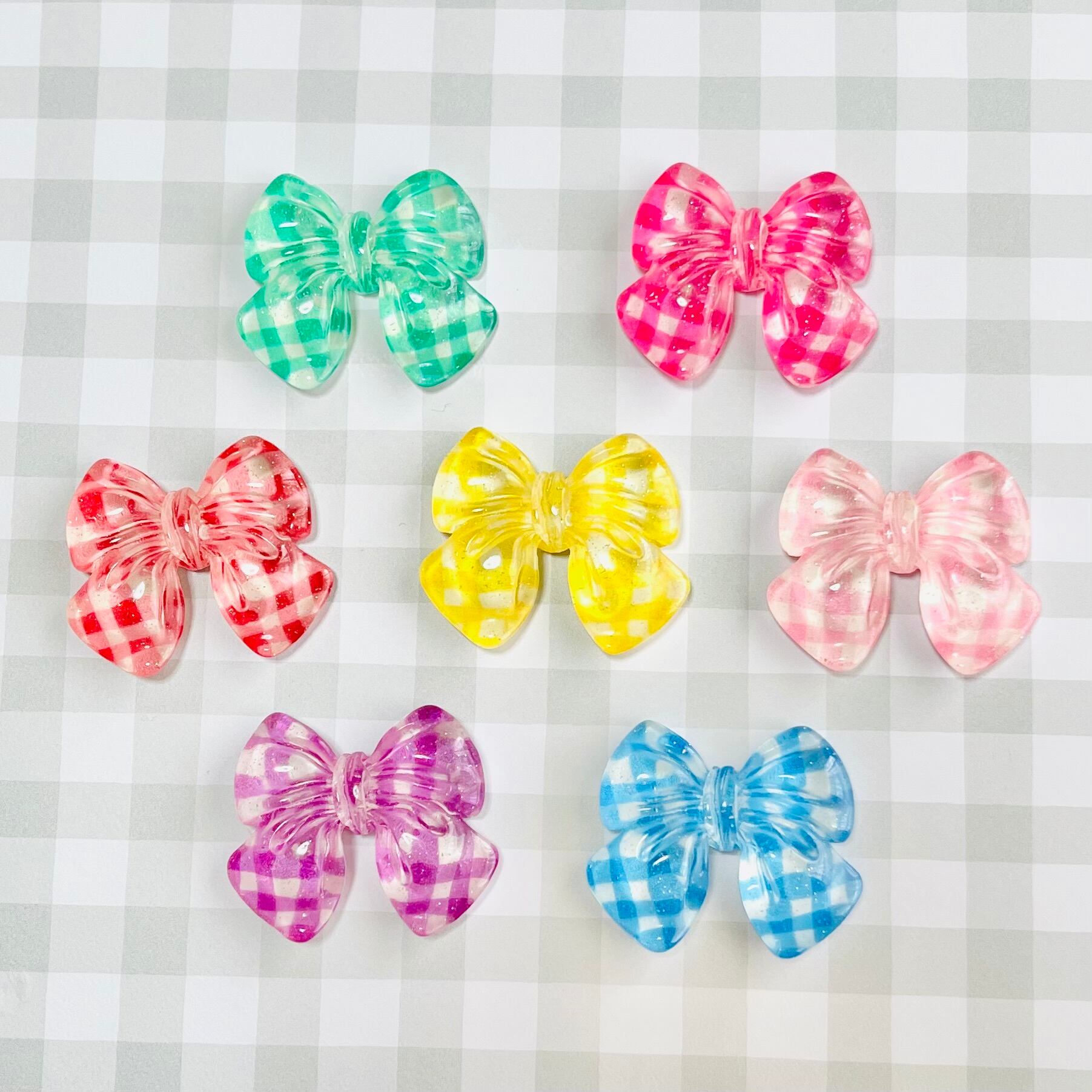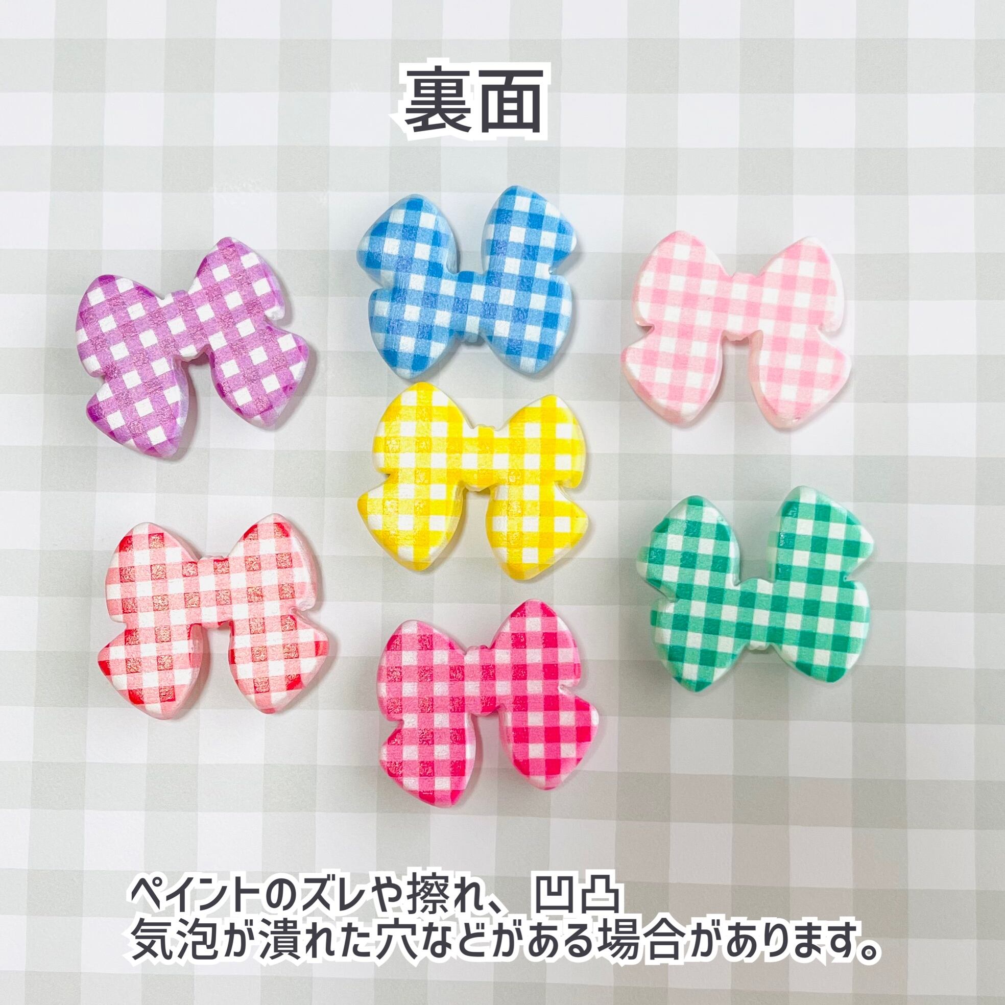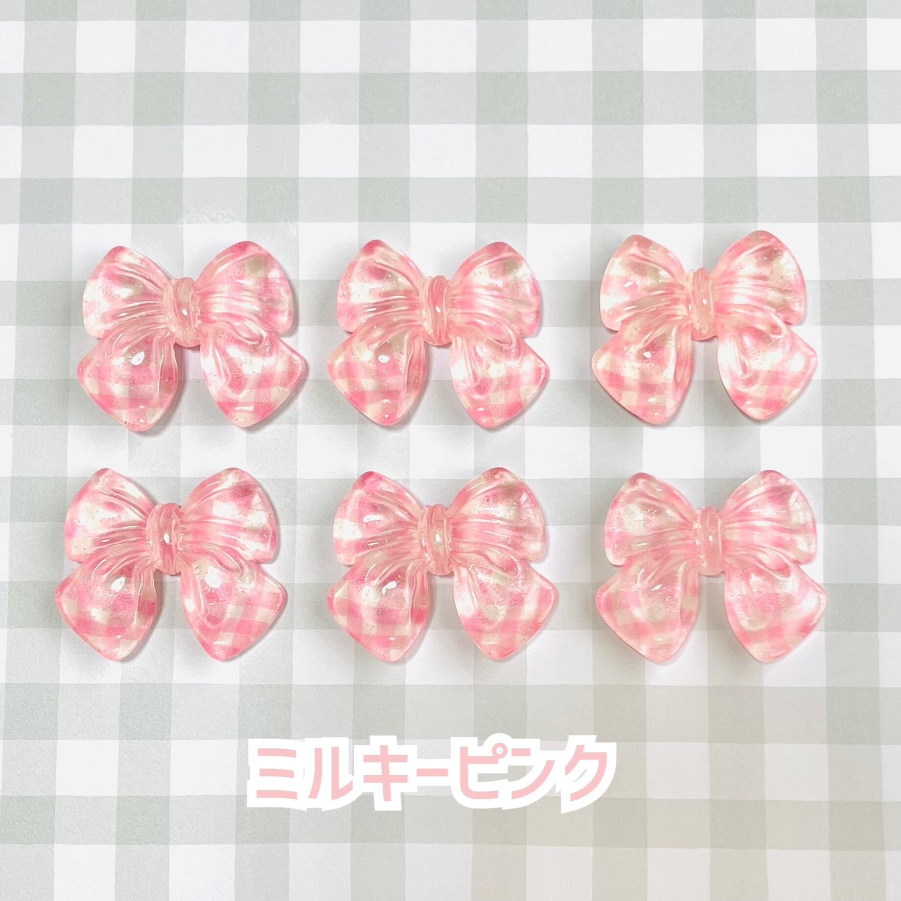 【2個】しわ加工クリアチェックリボン/デコパーツ【7色】#192