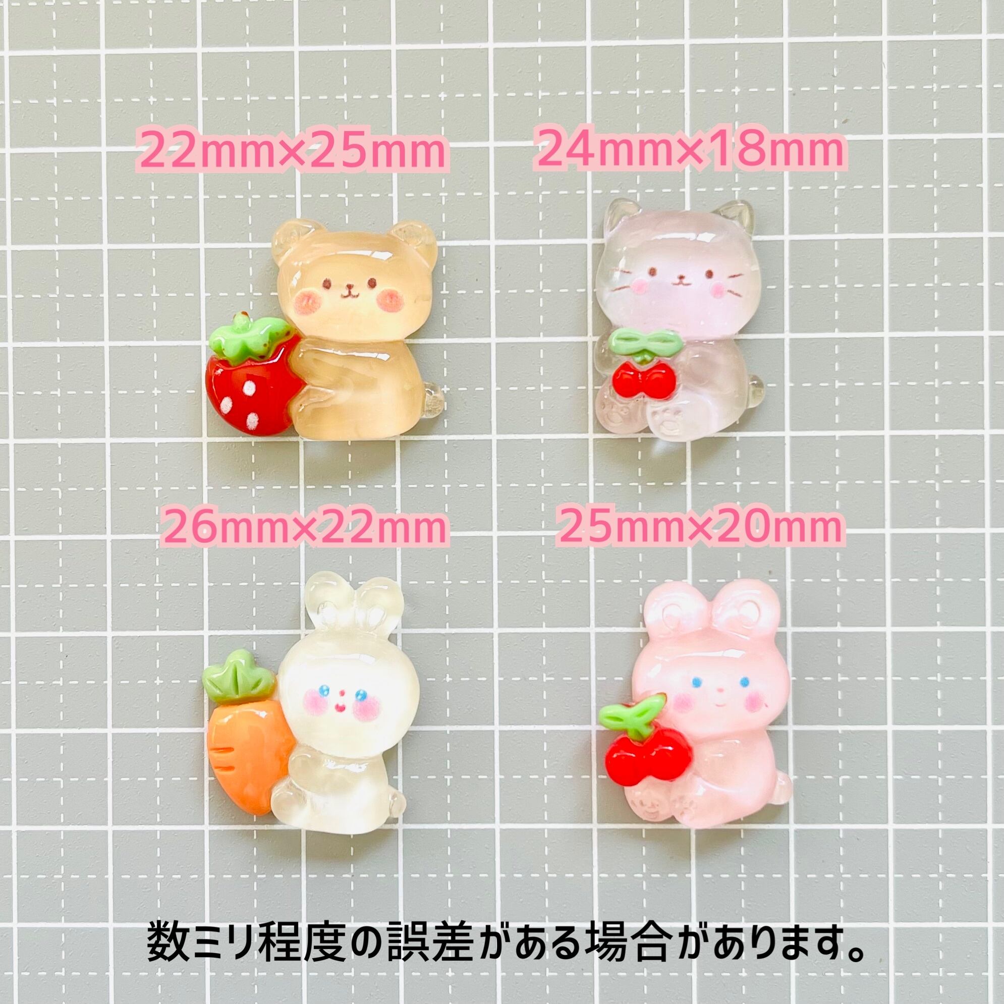 【2個】クリアアニマルフルーツパーティー/デコパーツ【4種】#199