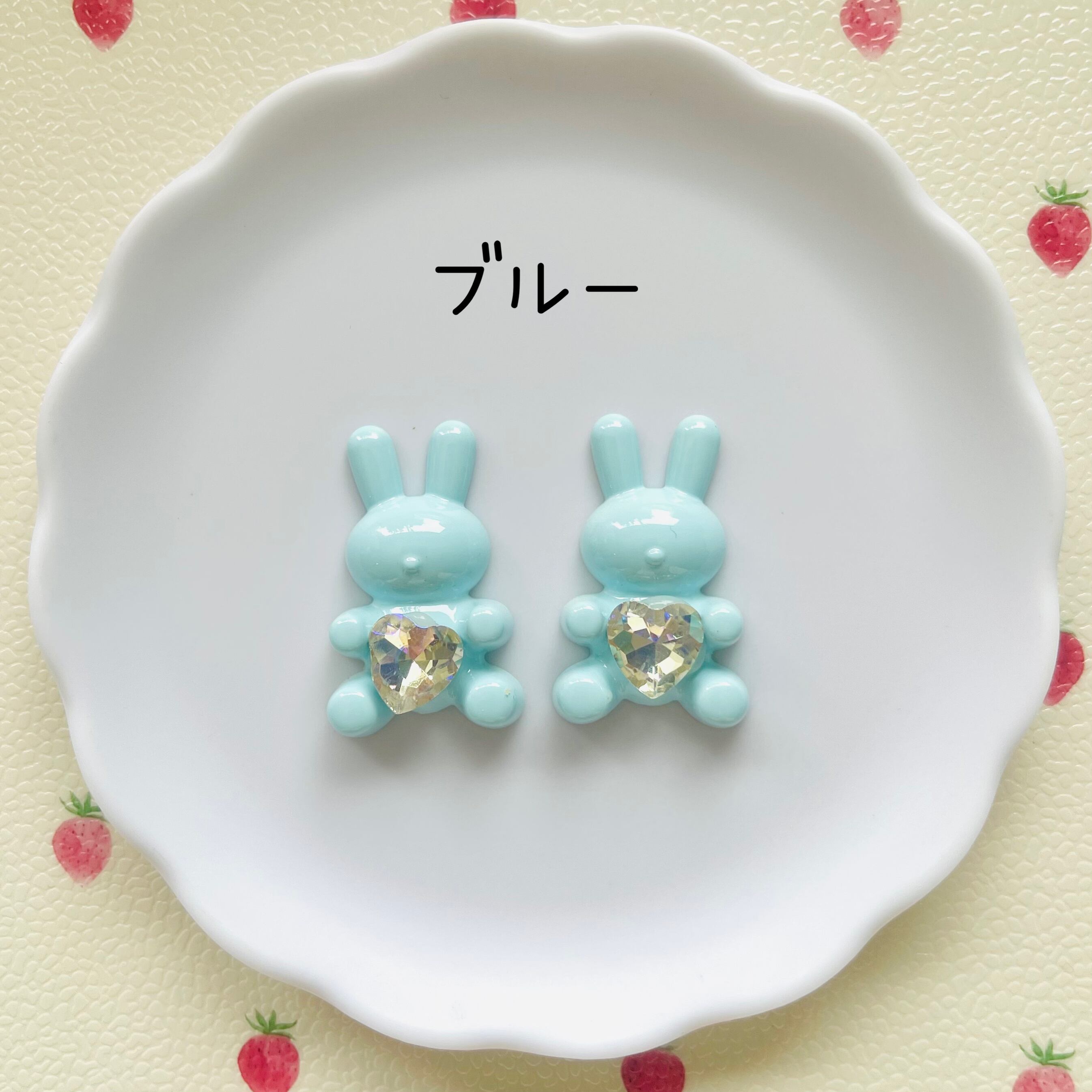 【2個】ハートストーンうさぎ/デコパーツ【5色】#246
